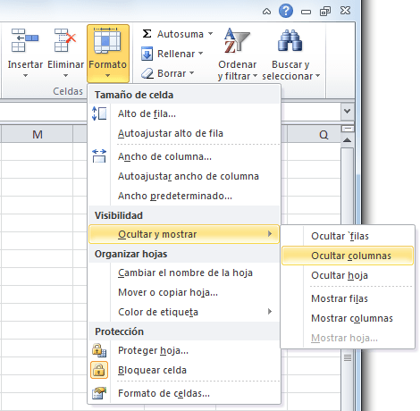 CTRL+0 (cero) Ocultar columnas seleccionadas