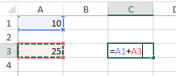 Y obtendríamos la sumatoria de las dos celdas anteriores, es decir, nos devolvería 10. Sin embargo, si en la misma celda A3 hubiéramos escrito lo siguiente:
