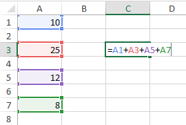 Además, Excel tiene la amabilidad de colorear las celdas que estás utilizando en diferentes colores para que así sea mucho más intuitivo y puedas evitar errores de manera visual consiguiendo marcar muy bien las celdas utilizadas en nuestras fórmulas Excel.